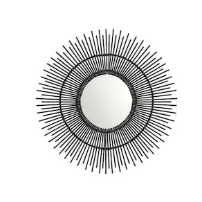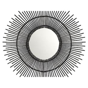 Espelho Decorativo Parede Redondo Formato Sol Em Bambu - 60 cm