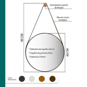 Com espessura de 3/4mm o espelho garante qualidade de reflexibilidade sem distorções. O espelho possui moldura em couro ecológico garantindo a estética, durabilidade e acrescentando mais charme na composição no design do produto.