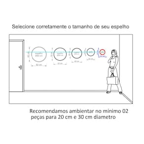 Moldura em alumínio que proporciona leveza ao produto e permite acabamento em pintura epóxi-pó (não enferruja).Espelhos que não distorcem a imagem, fabricados através do processo cooper free, livres de metais pesados, que não causa prejuízos a saúde e ao meio ambiente.Acabamento em revestimento de TNT para assegurar a conservação do produto.Acompanha pendurador, parafuso e bucha para instalação.Embalagem desenvolvida especialmente para envio de e-commerce* ESTE ESPELHO É PEQUENO TEM 20CM, SUGERIMOS MEDIR O LOCAL ONDE SERÁ INSTALADO, NÃO EFETUAMOS TROCA DEVIDO AO TAMANHO.