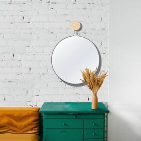 Espelho Vidro 60 cm de diâmetro Gancho pinus Largura 60 cm Moldura aço preto Marca: Não Informado Ean: 7908068018735