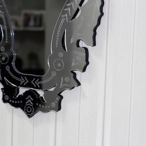 Esse espelho possui uma combinação única de beleza e funcionalidade. Nas laterais da peça, foram adicionados espelhos em acrílico, enquanto o centro é revestido com espelho de vidro da marca cebrace, garantindo um reflexo perfeito.