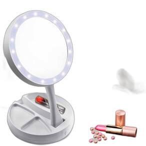 Espelho Dupla Face Dobrável Led Bancada Perfeito Para Você Este espelho é feito para você que, mesmo na correria cotidiana, sempre arruma um tempinho para retocar a maquiagem ou arrumar o cabelo.