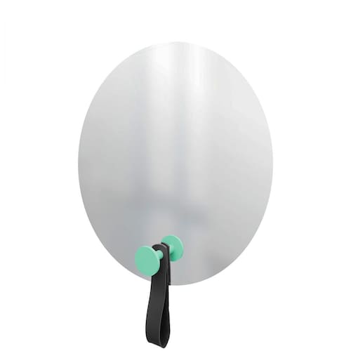 Espelho Funcional Hook Verde Alça Preta 50 Cm Redondo Espelhos que não distorcem a imagem, fabricados através do processo cooper free, livre de metais pesados, que não causa prejuízos a saúde e ao meio ambiente.