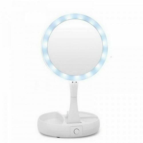 Espelho Led Iluminado Dobrável Portátil Ajustável Dupla Face Este espelho é feito para você que, mesmo na correria cotidiana, sempre arruma um tempinho para retocar a maquiagem ou arrumar o cabelo.