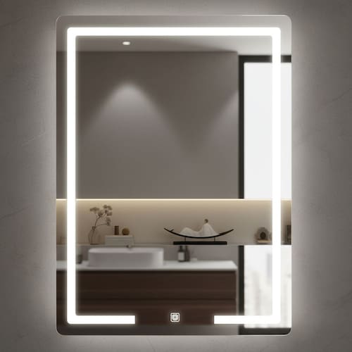 Este espelho nao e apenas esteticamente agradavel, mas tambem funcional. Ele vem com um sistema de iluminacao LED integrado, que fornece uma luz neutra suave, ideal para maquiagem ou barbear. Alem disso, o espelho e equipado com um recurso touch, permitindo que voce controle a iluminacao com um simples toque. A instalacao e facil, com tres pecas de fixacao de metal cinza inclusas, e pode ser realizada por sobreposicao, proporcionando uma aparencia limpa e sem emendas.