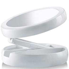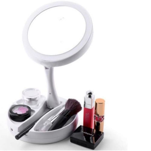 Espelho Maquiagem Articulável Aumenta 10x 1x Foldaway Mirror Lâmpada de espelho dupla face, espelho com ampliação de 10x no espelho traseiro e 1x na espelho frontal podendo girar ao contrario.Luzes super brilhantes na parte dianteira e traseira.Dobras planas para armazenamento e transporte.Espelho com funcionamento a base de 4 pilhas Aa NÃO Inclusas ou por USB. 3 compartilhamentos na base para guardar acessórios de maquiagem.Botão Liga/Desliga na parte de trás da base.Dimensões:Altura do espelho articulado com base: extensão máxima de 28 cmDiâmetro da base: 15 cmAltura da base: 2,5 cmItens Inclusos:01 Espelho Luminária Maquiagem Articulável 01 Manual de Instruções