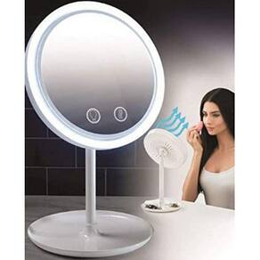 Novo espelho portátil que chegou para facilitar a sua vida na hora de fazer a sua maquiagem. Esse espelho possui 40 leds que ficam nas partes laterais da parte frontal do espelho e um ventilador pra te manter com um ar fresco durante o processo.
