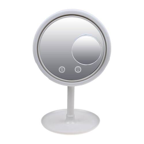 Espelho de maquiagem led com ventilador + mini espelho de aumento 5x com ventosa Este é o engenhoso espelho de maquilhagem com um ventilador embutido que sopra uma brisa refrescante, secando a maquiagem à medida que você se aplica e isso significa uma aplicação de maquiagem sem suor Características do produto: O ventilador embutido ajuda a secar a maquiagem e reduzir a transpiração A luz de anel led fornece iluminação suave com qualidade de estúdio Espelho de tamanho grande de 20 cm sem distorção Espelho de detalhe destacável bônus com ampliação de 5x Base ampla da bandeja de exibição para armazenar objetos de valor Toque nos botões do sensor para acender a luz do anel led, ventilador de refrigeração ou ambos O espelho funciona tanto no cabo usb quanto a pilha aa; Especificações do produto: Material: polipropileno e componentes eletrônicos. Alimentação: liga por usb ou com 4 pilhas aa 1.5v não incluso . Voltagem: 5v. Quantidade de led: 40 led. A função ventilador possui 3 velocidades. Possui 2 tipos de espelho, o maior que tem a visão normal e o menor que tem um aumento de 5x para te ajudar naquele detalhe. Espelho com 40 luzes de led frontal. Espelho com botão touch screen na parte frontal para ligar e desligar as funções. Possui base removível O espelho possui um espaço na base para você deixar os seus produtos de maquiagem acolhidos enquanto os usam. Conteúdo da embalagem: 1 - espelho visão normal. 1 - mini espelho visão aumentada 5x. 1 - cabo usb somente o cabo Ean: 7894350000215