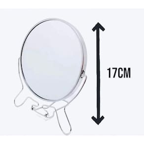 Seu formato redondo e moldura prata traz um toque de elegância para sua bancada, penteadeira ou mesa. Compacto, mas com ótimo campo de visão, possui 14 cm de diâmetro e 17,6 cm de altura, sendo fácil de posicionar sem ocupar muito espaço.