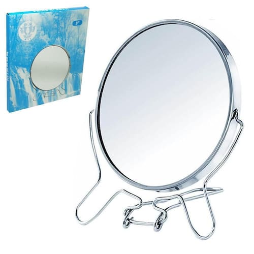 Espelho de mesa redondo dupla face 8'' 19,5cm de com pedestal e aumenta aramado