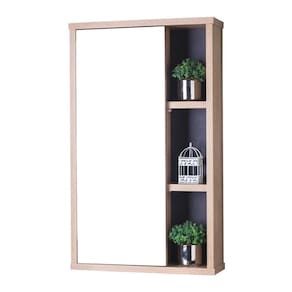 Espelho Milano para Banheiro com Armário Carvalho e Grafite - 69 x 42cm