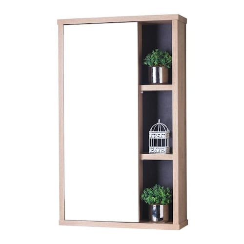 Armário com Espelho para Banheiros Modelo Milano na cor Carvalho Treviso (Madeira Clara) com Grafite, é a opção perfeita para deixar o seu banheiro com muito mais estilo e praticidade.