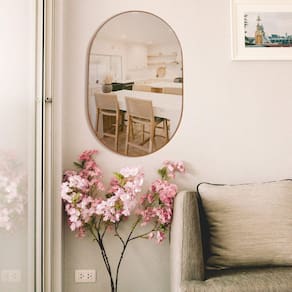 Para cuidar do seu espelho, recomendamos limpeza com espanador. Para tirar manchas do espelho, uma alternativa é diluir algumas gotas de detergente neutro em água morna e esfregar delicadamente com uma esponja macia. Em seguida, utilizar um pano somente com água para remover o detergente. Acompanha Manual de Instalação: Sim Altura: 80 Ambiente: Sala de Estar Ambiente Principal: Sala de Estar Bisotê: Não Borda Decorada: Sim Cor: Caramelo Cor do Produto: Caramelo Cor Predominante: Marrom Espessura: 30 Espessura da moldura: 30 Estilo: Rústico Formato: Oval Instruções de instalação: Instalação simples através de parafuso, bucha e gancho embutido na parte de trás do espelho Itens Inclusos: 1 Espelho Largura: 50 Material da Moldura: MDF Modo de Aplicação: Vertical/Horizontal Origem do Produto: Nacional País de Origem: Brasil Peso: 3.2 Possui Moldura: Sim Tamanho do Espelho: 80cm x 50cm Tipo de Espelho: De Parede Tipo de Fixação: Fixação através de gancho Ean: 7908308770980