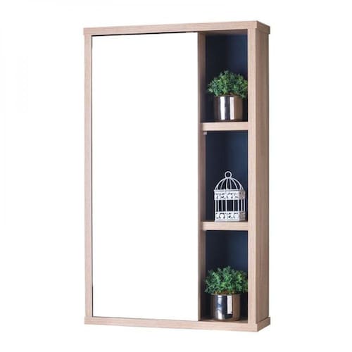 Armário com Espelho para Banheiros Modelo Milano na cor Carvalho Treviso (Madeira Clara) com Azul Marinho, é a opção perfeita para deixar o seu banheiro com muito mais estilo e praticidade.