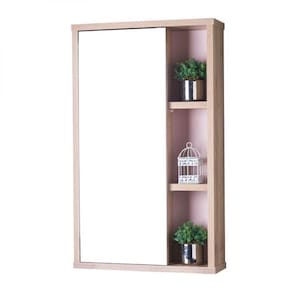 Armário com Espelho para Banheiros Modelo Milano na cor Carvalho Treviso (Madeira Clara) com Rosa Claro, é a opção perfeita para deixar o seu banheiro com muito mais estilo e praticidade.