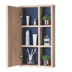 Espelho para Banheiro com Armário Milano Carvalho e Azul Marinho