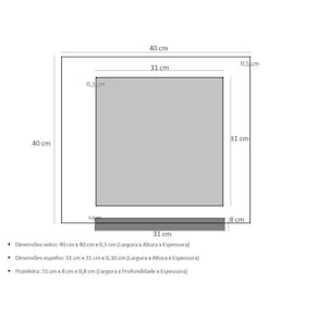 Espelho para banheiro com prateleira 40cm ouro envelhecido Os nossos espelhos são ideais para banheiros e lavabos trazendo um toque especial no projeto de decoração e proporcionando um design moderno e arrojado no ambiente. Além da elegância, sofisticação e praticidade tem a qualidade e a durabilidade indiscutível, pois todos os itens podem molhar que não irá danificar, os vidros são pintados com tinta de alta performance, o que lhe garante a permanência da cor . Os suportes da prateleira e as tampas dos parafusos são de inox, mais uma de excelência da qualidade desse produto. Itens inclusos: - vidro temperado colorido: 40 cm x 40 cm largura x altura - espelho: 31 cm x 31 cm x largura x altura - prateleira: 31 cm x 8 cm largura x profundidade - kit parafusos completo para instalação Espessuras: - vidro temperado: 5 mm - espelho: 3 mm - prateleira: 8 mm Montagem: montagem e instalação não inclusa na venda ou preço do produto, elas são de inteira responsabilidade do cliente. Atenção: o espelho já vai fixado no vidro. Imagens ilustrativas.