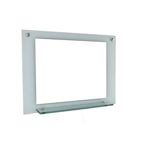 Espelho para banheiro com prateleira 50cm branco Os nossos espelhos são ideais para banheiros e lavabos trazendo um toque especial no projeto de decoração e proporcionando um design moderno e arrojado no ambiente. Além da elegância, sofisticação e praticidade tem a qualidade e a durabilidade indiscutível, pois todos os itens podem molhar que não irá danificar, os vidros são pintados com tinta de alta performance, o que lhe garante a permanência da cor . Os suportes da prateleira e as tampas dos parafusos são de inox, mais uma de excelência da qualidade desse produto. Itens inclusos: - vidro temperado colorido: 50 cm x 40 cm largura x altura - espelho: 41 cm x 31 cm x largura x altura - prateleira: 41 cm x 8 cm largura x profundidade - kit parafusos completo para instalação Espessuras: - vidro temperado: 5 mm - espelho: 3 mm - prateleira: 8 mm Montagem: montagem e instalação não inclusa na venda ou preço do produto, elas são de inteira responsabilidade do cliente. Atenção: o espelho já vai fixado no vidro. Imagens ilustrativas.