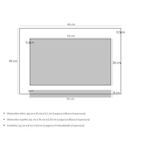 Espelho para banheiro com prateleira 80cm champanhe Os nossos espelhos são ideais para banheiros e lavabos trazendo um toque especial no projeto de decoração e proporcionando um design moderno e arrojado no ambiente. Além da elegância, sofisticação e praticidade tem a qualidade e a durabilidade indiscutível, pois todos os itens podem molhar que não irá danificar, os vidros são pintados com tinta de alta performance, o que lhe garante a permanência da cor . Os suportes da prateleira e as tampas dos parafusos são de inox, mais uma de excelência da qualidade desse produto. Itens inclusos: - vidro temperado colorido: 80 cm x 45 cm largura x altura - espelho: 66 cm x 36 cm x largura x altura - prateleira: 66 cm x 8 cm largura x profundidade - kit parafusos completo para instalação Espessuras: - vidro temperado: 5 mm - espelho: 3 mm - prateleira: 8 mm Montagem: montagem e instalação não inclusa na venda ou preço do produto, elas são de inteira responsabilidade do cliente. Atenção: o espelho já vai fixado no vidro. Imagens ilustrativas.