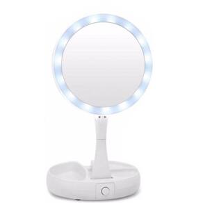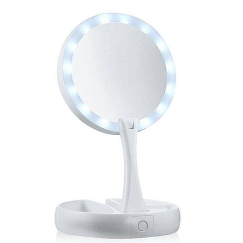Quando já estiver fora de casa este espelho é ideal para você fazer sua maquiagem no camarim, carro, ambientes que possam não ter muita iluminação, quarto, sala ou na sua casa. My Foldaway Mirror é um espelho de vaidade iluminado e de dois lados. Tem uma poderosa ampliação de 10x. Dobra e gira para fácil utilização e armazenamento. O LED super brilhante acende-se em ambos os lados para iluminação perfeita da imagem. É feito de vidro isento de distorção. Este espelho 1x gira para um poderoso espelho de ampliação de 10x. Possui um organizador embutido para acessórios. É leve e compacto para viagens. O espelho é nítido, limpo e livre de distorção. - lâmpada de espelho dupla face: espelho com ampliação de 10x no espelho traseiro e 1x na espelho frontal podendo girar ao contrario. - luzes super brilhantes na parte dianteira e traseira - dobras planas para armazenamento e transporte - Espelho com funcionamento a base de 4 pilhas AA NÃO INCLUSAS - 3 compartilhamentos na base para guardar acessórios de maquiagem - Botão Liga/Desliga na parte de trás da base Conteúdo da embalagem: 1- Espelho com base Dimensões: - Altura do espelho articulado com base: extensão maxima de 28 cm - Diâmetro da base: 15 cm - Altura da base: 2,5 cm Marca: My Fold Away