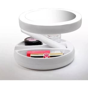 Espelho Porta Maquiagem Luz Led Portátil Aumento Tela Esse espelho, é ótimo para você que na correria cotidiana, sempre arruma um tempo para retocar a maquiagem ou arrumar o cabelo.Por ser dobrável, leve e compacto, ele ocupa pouco espaço o tornando ideal para se guardar na bolsa, sendo que ele pode ser estendido em até 33 cm de altura. Além de ter um design super elegante, este espelho de maquiagem com dupla face, é iluminado com leds, sendo muito prático, basta pressionar um botão na parte inferior do suporte, que ligará as luzes LED, as luzes de LED são super brilhantes em ambos os lados para iluminação perfeita da imagem. O mesmo gira e se transforma em um poderoso espelho de ampliação que aumenta em 10x a imagem. Características: Modelo: espelho led 10x dupla face Material do suporte: plástico Vidro: livre de distorção Leds: são classificados por 30.000 horas Espelho de aumento: 10x Construído com organizador para acessórios 4 pilhas aa Medidas do produto: 28x12x15 Peso: 338g Itens Inclusos: 1 Espelho Dobrável com LED e 360º 1 Manual de Instruções 4 Pilhas AA Ean: 7897517905224