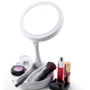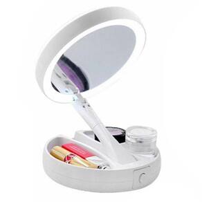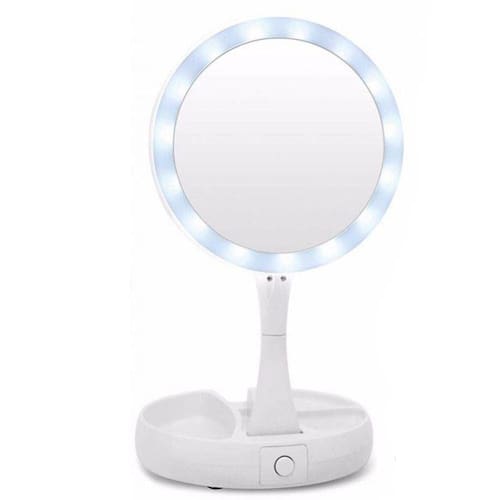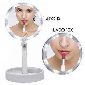 Espelho articulado portátil com led para maquiagem - my fold away mirror Sobre o produto: Este espelho é ideal para você fazer sua maquiagem no camarim, carro, ambientes que possam não ter muita iluminação, quarto, sala ou na sua casa. My fold away mirror é um espelho de vaidade iluminado e de dois lados. Tem uma poderosa ampliação de 10x. Dobra e gira para fácil utilização e armazenamento. O led super brilhante acende-se em ambos os lados para iluminação perfeita da imagem. É feito de vidro isento de distorção. Este espelho 1x gira para um poderoso espelho de ampliação de 10x. Possui um organizador embutido para acessórios. É leve e compacto para viagens. O espelho é nítido, limpo e livre de distorção. Características e especificações: - lâmpada de espelho dupla face: espelho com ampliação de 10x no espelho traseiro e 1x na espelho frontal podendo girar ao contrário. - luzes super brilhantes na parte dianteira e traseira - dobras planas para armazenamento e transporte - espelho com funcionamento a base de 4 pilhas aa (não inclusas - não necessárias para uso conectado a tomada) - 3 compartilhamentos na base para guardar acessórios de maquiagem - botão liga/desliga na parte de trás da base Dimensões: - altura do espelho articulado com base: extensão máxima de 28 cm - diâmetro da base: 15 cm - altura da base: 2,5 cm Itens inclusos 01- espelho com base 01- cabo para carregamento