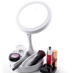 Este espelho também possui um organizador embutido na base, onde você pode guardar seus acessórios de maquiagem. Além disso, ele é leve e compacto, ideal para viagens.