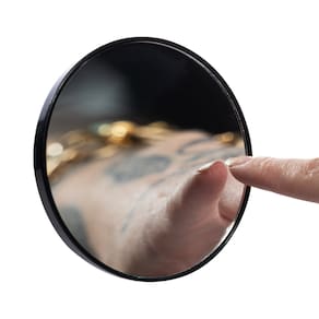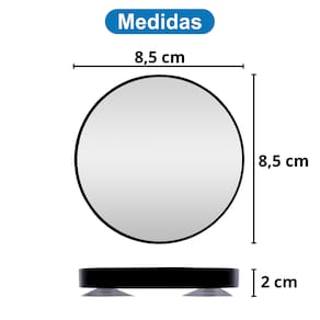 • 01 Espelho Redondo de Acrílico com Ampliação 5x e Ventosas Preto 8,5cm Lyor