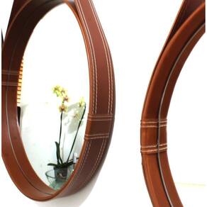 Espelho redondo decorativo com moldura alça de couro 60cm caramelo Os espelhos decorativos são as mais novas tendências modernas e sofisticadas, perfeitas para quem quer deixar seu ambiente rico em detalhes. Ideal para a composição da decoração de salas, corredores, quartos, halls e outros ambientes, proporcionando elegância com sofisticação e uma decoração em alto estilo, moderno e requintado, auxiliando na melhor composição do seu ambiente. Nossos produtos passam por um rigoroso processo de fabricação, desde a seleção dos materiais até a embalagem, a estrutura desse espelho é em mdf e borda em couro com 3cm de profundidade que garantem uma peça com excelente design e de qualidade incomparável. A embalagem do espelho é feita com muito estudo para não quebrar durante o transporte, garantindo sua segurança e integridade. Dimensões Altura: 60cm Largura: 60cm Profundidade: 3cm Espelho: 3mm Diferencial - fácil instalação - alta durabilidade - fácil limpeza - excelente acabamento Montagem: montagem e instalação não inclusa na venda ou preço do produto, elas são de inteira responsabilidade do cliente. Imagens ilustrativas.