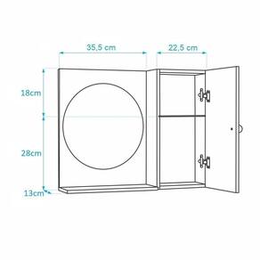 Espelho Redondo para Banheiro com Armário Preto. Já vem montado, pronto para colocar na parede. É só abrir a caixa e instalar em seu banheiro. Acompanha 2 parafusos com buchas para instalar na parede. Obs: a colocação dele na parede é por conta do cliente, mas é bem fácil de fazer, basta uma furadeira, régua e lápis para marcar o local de instalação. Basta colocar os dois parafusos na parede, depois encaixar o armário com espelho neles (tem 2 suportes metálicos atrás do armário, para encaixar nos parafusos). Armário para Banheiro com Espelho na cor Preto é ideal para organizar vários itens. Possui prateleira interna em vidro, armário com porta e amplo espelho. É a escolha perfeita para seu banheiro. Material: MDP 15mm Cor: Preto Altura total: 46cm Largura total: 58cm Profundidade total: 12,5cm Instalação: a montagem e instalação do produto na parede são por conta do cliente Limpeza e conservação: recomenda-se a limpeza com pano úmido, não utilizar produtos abrasivos ou químicos Obs: Este anuncio inclui somente o armário com espelho, todos os itens de decoração das fotos não estão inclusos.