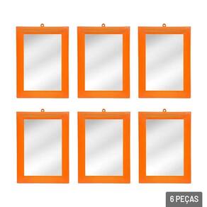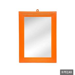 Espelho Retangular 23x16cm 6 Pçs Moldura Lar Espelho 16 X 23\n- Com moldura de plástico\n- Laranja para parede\nEspecificações:\nMarca : BUDEPLAST\nTipo de material : Plástico E Vidro\nCores ou Estampa : Laranja\nDimensões do Produto : 23 X 1,5 X 16 CM\nDimensões da Embalagem : 23 X 1,5 X 16 CM\nPeso Bruto (Gramas) : 1.074 - Contém 6 unidades.