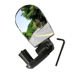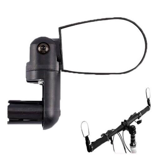 Retrovisor de fixação no guidão da bicicleta através de sistema de plug, fabricado com material alta resistência ABS, podendo ser ajustado na posições horizontal e ajustado em ângulo.