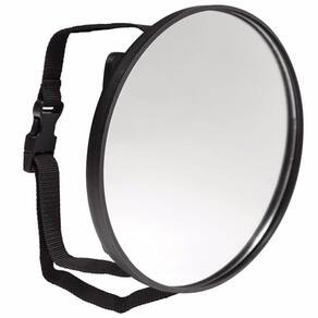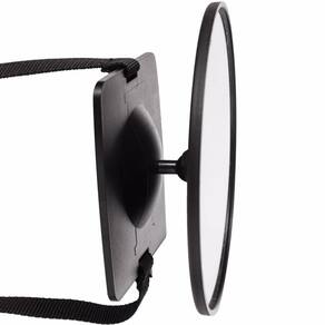 Ele é resistente à queda e super prático, pois, sua instalação é feita no encosto do banco traseiro através de alças ajustáveis e clipe para fechar. O espelho é convexo, ampliando o campo de visão e gira 360 para que possa ser posicionado de acordo com o melhor ângulo.