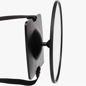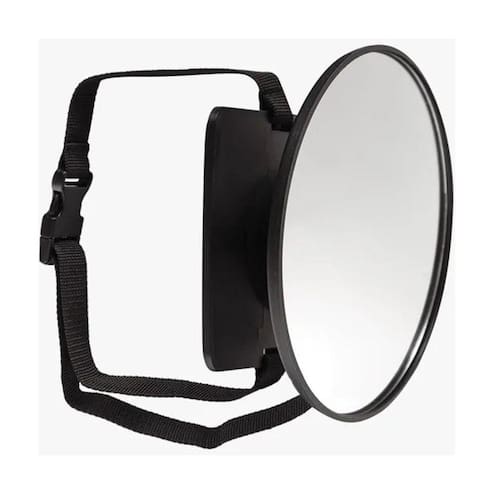 Projetado para tal função, o retrovisor é instalado no banco traseiro através de alças ajustáveis ao encosto, que facilita o encaixe e a instalação. Além disso, o espelho é convexo, o que amplia o campo de visão para os pais.