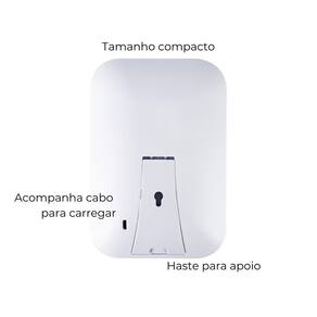 Características principais: - 3 cores de led; - botão touch discreto; - espelho com perfeito acabamento; - cor branca; - leve e compacto; - versátil; - acompanha cabo para carregar; - possui haste para ficar de pé.