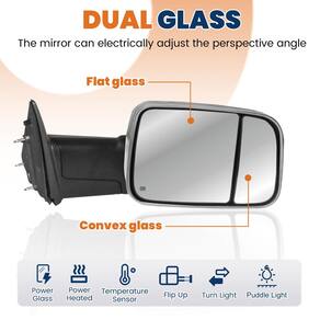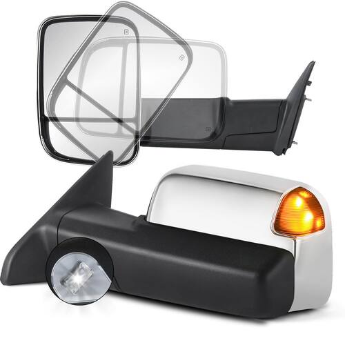 Par de espelhos de reboque aquecidos cromados KUIPERAUTO compatíveis com o Dodge Ram 1500 2009-2018 (somente clássico de 19 a 24 anos) Compatível com a luz LED de pisca-pisca 2500 3500 2010-2018