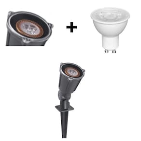 Luminária espeto para jardim para lâmpada led gu-10, corpo em nylon plástico de engenharia na cor verde. Resistente as intempéries do tempo. Tampa/lente transparente de policarbonato, fixada com parafusos bicromatizados. Soquete gu-10. Regulagens nas articulações, permitindo ajuste do foco de luz para qualquer direção.