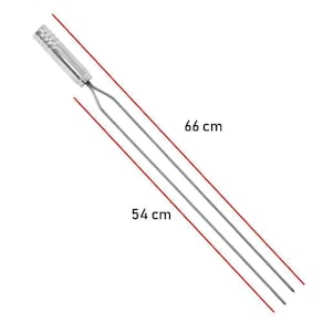 O Espeto Duplo Issi Grill possui 66 cm, é feito em aço inox 304 com cabo de madeira revestido em alumínio, perfeito para assar uma costela, picanha, sobrecoxa de frango, lombinho de porco ou até aquele delicioso pão com alho.