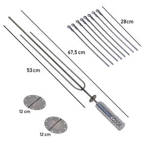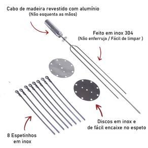 - Espeto Tridente com 2 Discos de inox para colocar 8 espetinhos de inox