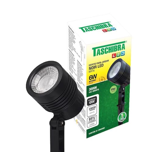 O Espeto LED para Jardim Taschibra Noir MR16 6W 3000K é indicado para iluminação externa decorativa e funcional em áreas verdes. Com LED integrado, bivolt e luz quente de 3000K, oferece boa iluminação com baixo consumo de energia. Sua potência de 6W e fluxo luminoso de 360 lúmens proporcionam claridade adequada para realçar jardins, caminhos e fachadas. Pode ser utilizado em ambientes externos, como jardins residenciais, áreas de lazer e paisagismo em geral. A Taschibra é uma marca reconhecida no segmento de iluminação, oferecendo garantia de 12 meses junto ao fabricante.