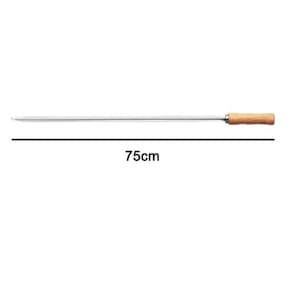 Espeto Para Assar Carne Frango Costela Churrasco 75Cm Produzido através do sistema de galvanoplastia mais moderna da América Latina, o Espeto Simples 75cm da Mor é item básico e indispensável para todo bom churrasqueiro. Desenvolvidos com lâmina de aço com acabamento em cromo e cabo de madeira, os Espetos Mor são resistentes e duráveis, perfeitos para você preparar saborosos churrascos para a família e os amigos. Especificações: Material: Aço Cromado Comprimento: 75 cm Peso: 194 gr Marca: Não Informado Ean: 7908232371710
