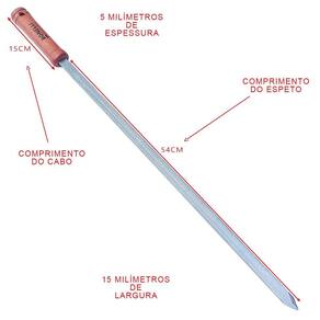 Indicado para: - Churrascos em casa - Lanchonetes e bares - Restaurantes e espetarias - Confraternizações e eventos O que você recebe: 1x Espeto para Churrasco em Aço Galvanizado com Cabo de Madeira - 69cm