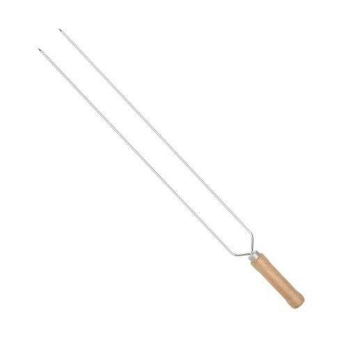 Asse carnes com o Espeto para Churrasco Mor Espeto Duplo 75cm Cromado, ideal para uso na churrasqueira. O formato duplo ajuda a firmar melhor os alimentos e facilita o preparo no dia a dia. Produzido em arame de aço com acabamento em cromo e cabo de madeira, oferece resistência e manuseio mais confortável. Com 75 cm de comprimento, é indicado para assar carnes, frangos e linguiças com praticidade. Acompanha 1 espeto duplo e conta com garantia de 3 meses.