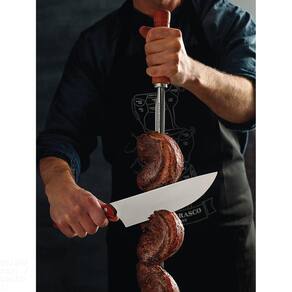 O Espeto para Churrasco Tramontina com Lâmina em Aço Inox e Cabo de Madeira 85 cm deixa o churrasco de domingo ainda mais especial. Com 85 cm de comprimento, ele não enferruja e ainda leva mais estilo e praticidade para sua churrasqueira. Produzido em aço inox e com cabo de madeira, ele é resistente e fácil de limpar. A melhor companhia para preparar as melhores carnes. Orientações Lâmina de aço inox com maior espessura e uma estampagem do aço que garante resistência. Cabo de madeira natural. Características Gerais EAN13 7891112210394 DUN14 17891112210391 NCM 7323.93.00 Peso Líquido 0,2500 kg. Peso Bruto 0,2500 kg. Metragem 0,000870 m³. Dimensões Embalagem (Compr. X Larg. X Alt.) 850x 32x 32 mm. Dimensões Produto (Compr. X Larg. X Alt.) 850x 32x 32 mm. Observações Antes da primeira utilização, lave bem as peças e seque-as. Tenha cuidado ao manusear produtos cortantes e perfurantes e mantenha-os fora do alcance de crianças. Para maior durabilidade dos produtos, recomenda-se secar bem antes de guardar.Para descarte dos produtos e embalagens siga as orientações de reciclagem vigentes.