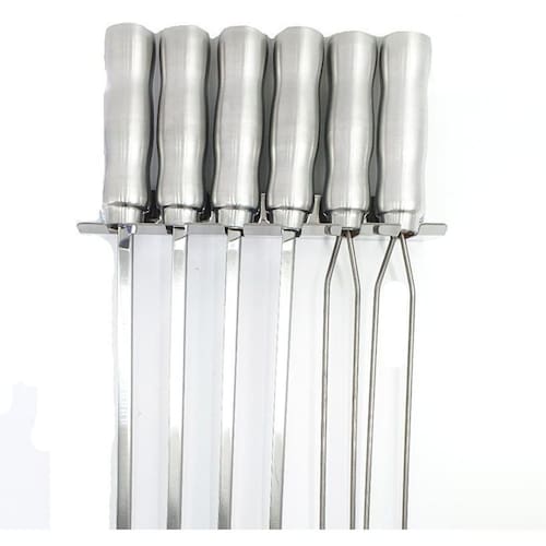 Aproveite essa oportunidade e adquira agora mesmo o Kit 6 Espetos Churrasco Em Inox 34Cm Lamina Com Porta Espeto. Tenha em mãos os melhores espetos para fazer um churrasco delicioso!