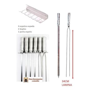 - As lâminas dos espetos possuem 34cm de comprimento.