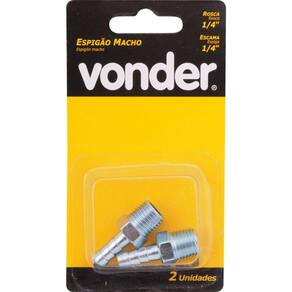 Espigão Fixo Macho Mangueira 1/4 Rosca 1/4 Npt Aço Zi Vonder Conteúdo da embalagem 2 Espigões Aplicações e dicas de uso Indicado para conectar mangueiras de 1/2 em redes de ar comprimido Destaques e diferenciais Fabricado em aço zincado, proporcionando boa resistência à oxidação/corrosão DETALHES TÉCNICOS