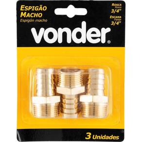 Marca: VonderConteúdo da embalagem:1 Cartela com 3 espigões.Destaques e diferenciais:Fabricado em latão, proporcionando excelente resistência à oxidação/corrosão.Aplicações e dicas de uso:Indicado para conectar mangueiras em redes de ar comprimido.Detalhes TécnicosDiâmetro da escama: 3/4 Medida da rosca: 3/4 Material do espigão: Latão Tipo da rosca: NPT - Macho - E CDC : legal: 90 dias Marca: Não Informado Ean: 7893946722326