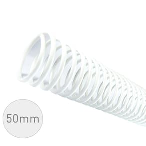 Espiral para Encadernação Branco 50mm 450 Folhas 12 und      - Espiral plástico Colorido fabricado em PVC Semi-Rígido.   - Diâmetro de 50mm para encadernar 450 folhas (24 kg / 75gr), com comprimento de 33cm.   - Fio de 2,9mm.   - Utilizado para encadernação de diversos fins, tais como apostilas, listas de preços, relatórios, cadernos, agendas, livros didáticos e etc.       - Pacote acompanha 12 unidades de espirais branco.     Produto plataforma Plast.