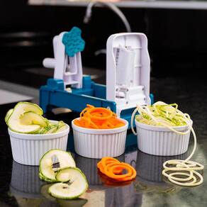O espiralizador de legumes da linha Gourmet da Prana é um prático utensílio para fazer macarrão vegetariano, saladas variadas ou recheio de pizza.
